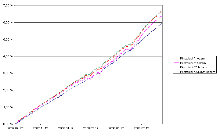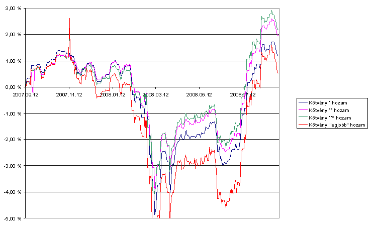 A hozamok időbeli alakulását a következő ábrán is áttekinthetjük: